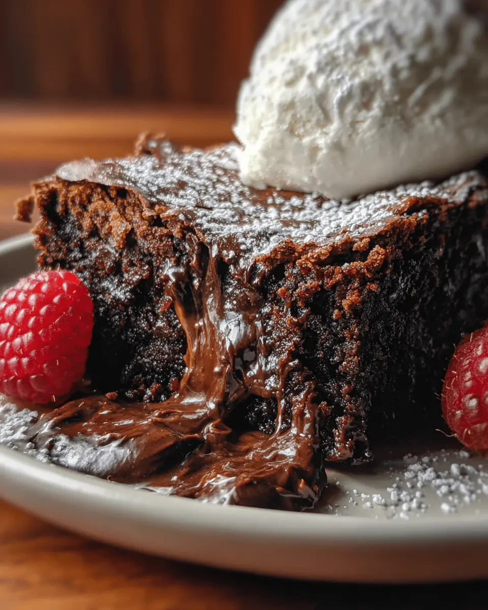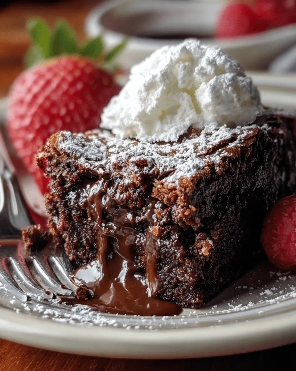 Presentation matters! A simple, elegant way to serve chocolate earthquake cake is to dust it with powdered sugar right before serving. Place a generous slice on a plate and garnish with fresh mint leaves or seasonal berries for a pop of color.