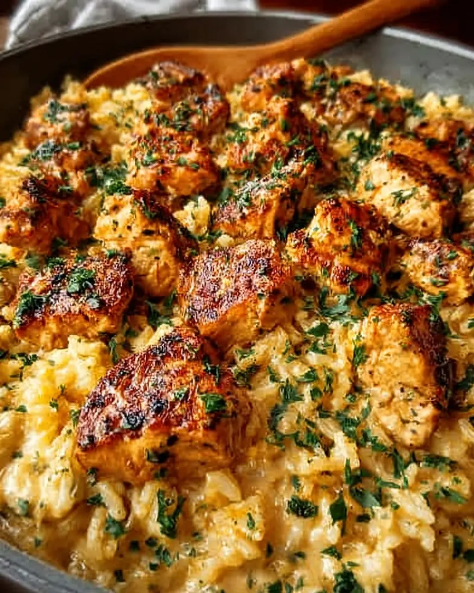 Keywords: Creamy Garlic Butter Chicken, Cheesy Rice Skillet, Chicken Dinner