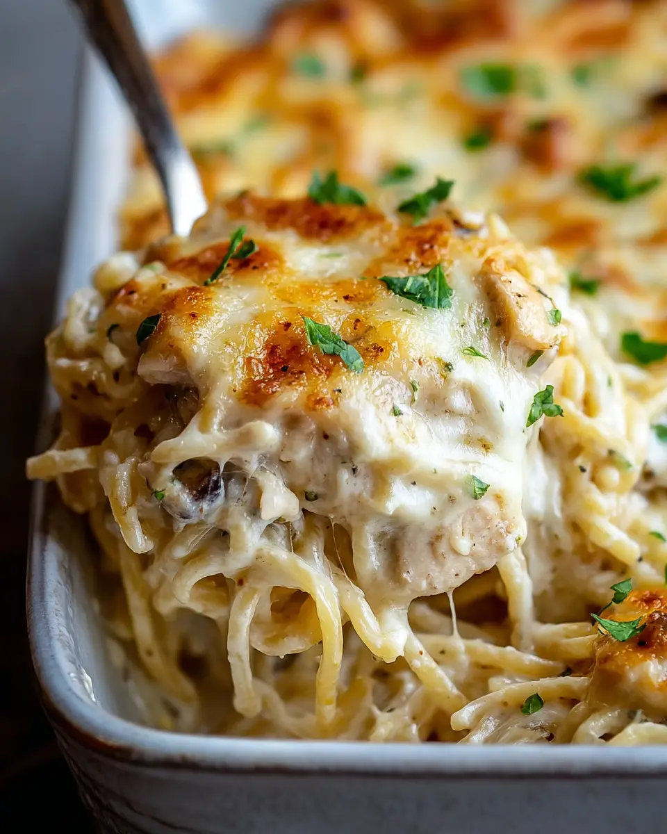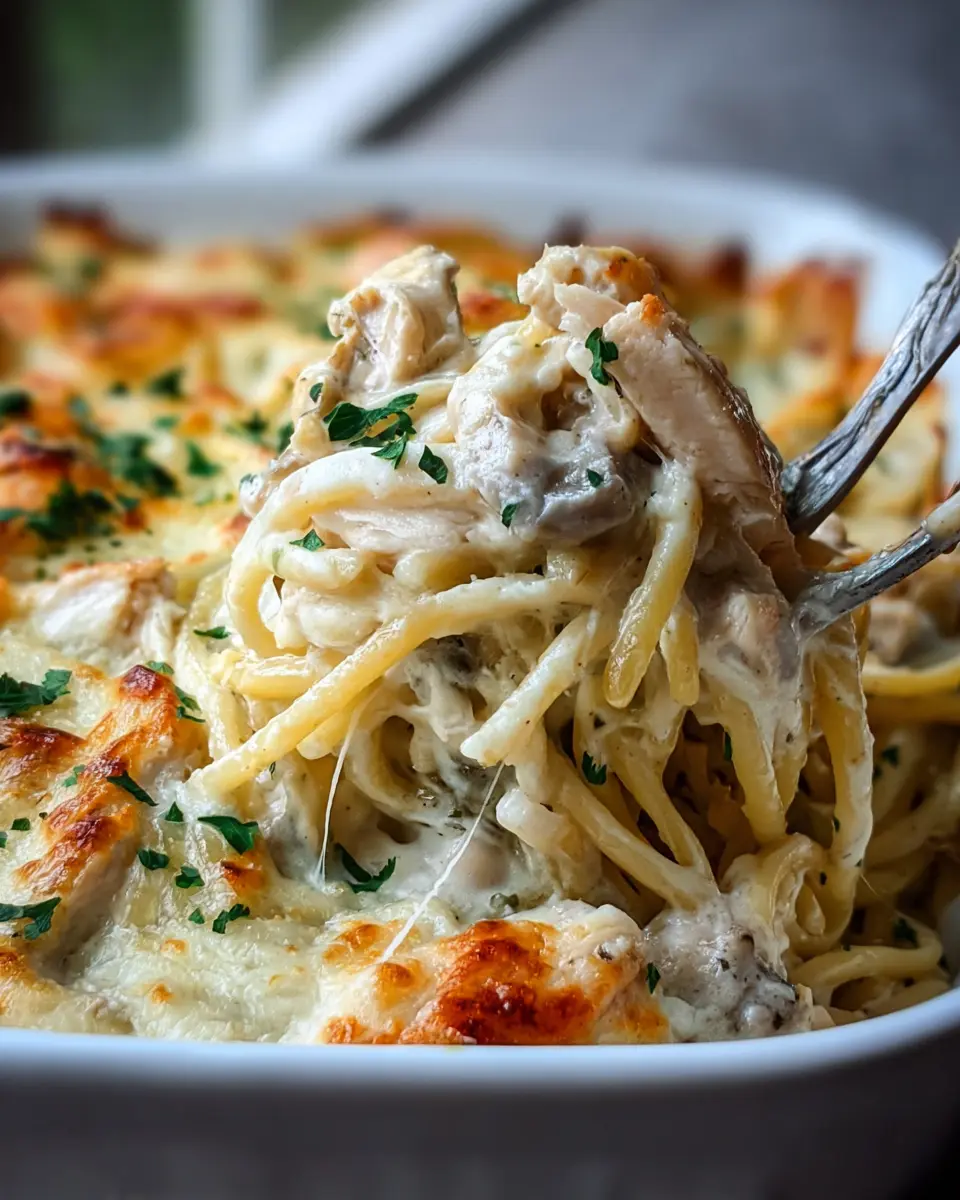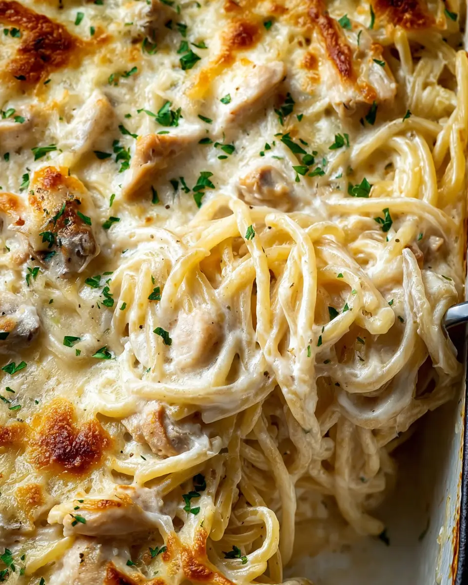 As your easy chicken tetrazzini bakes, the aromas filling your kitchen will have everyone gathering around, eager to dig in. Once it’s ready, let it cool for a few minutes before serving.