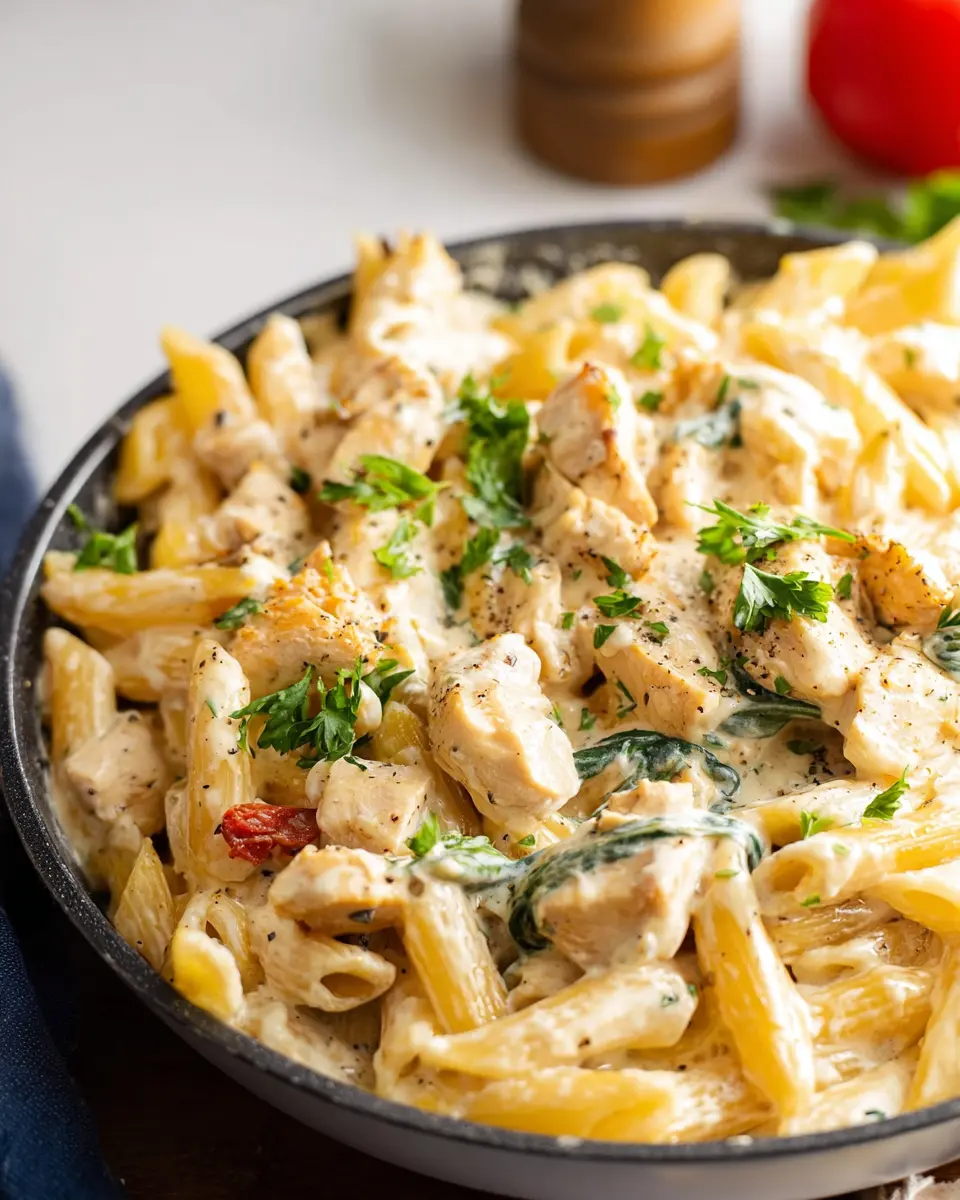Meal preparation doesn’t have to be complicated or time-consuming. With just a few ingredients, including tender chicken, rich cream, and pasta of your choice, you can create a dish that’s oh-so-simple yet deeply satisfying. Want a hint of smoky flavor? Throw in some diced turkey bacon for that extra touch!