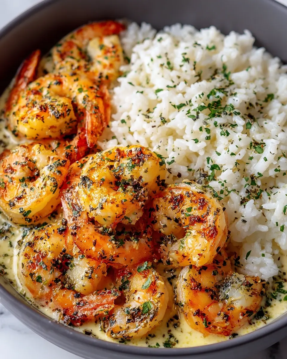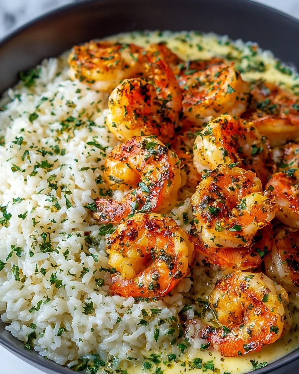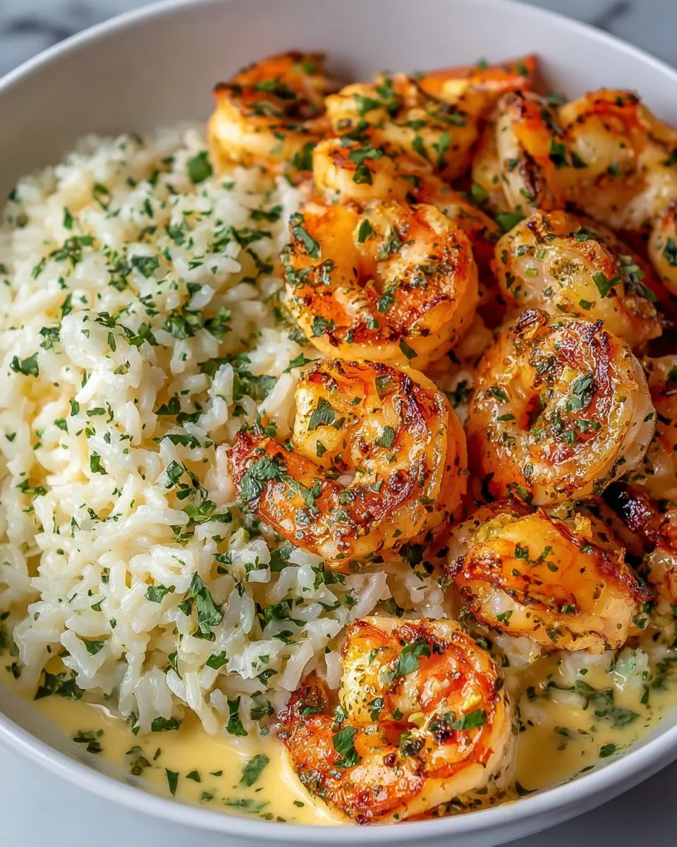 Keywords: Garlic Butter Shrimp, Creamy Parmesan Rice, Comfort Food