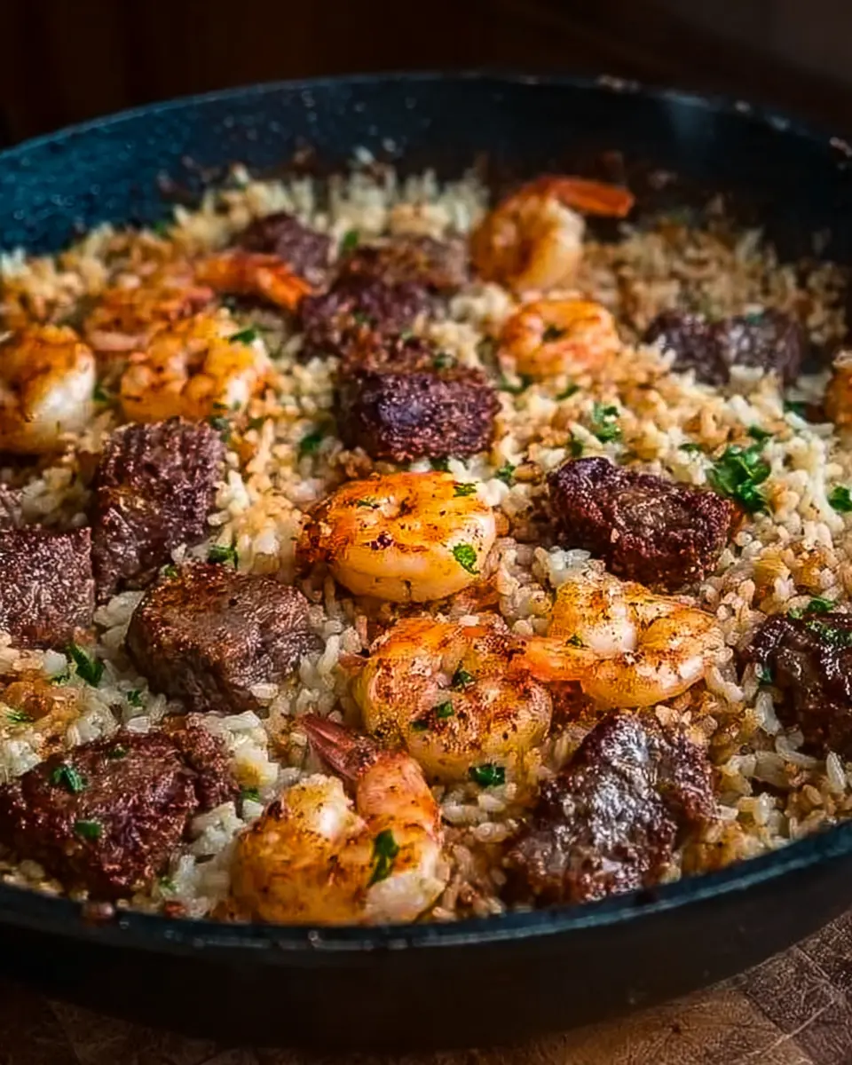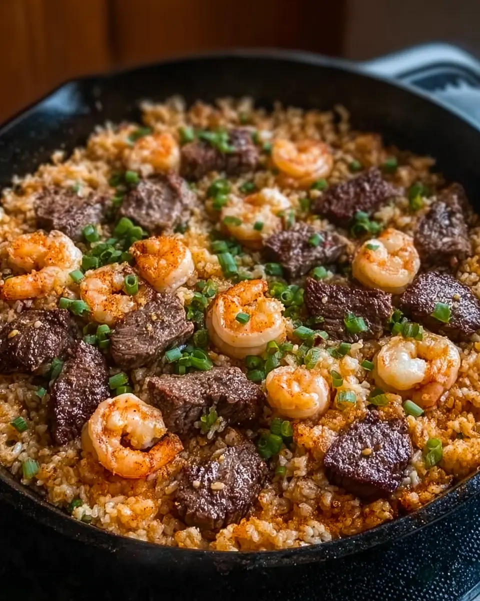 Creating a delicious Garlic Butter Surf and Turf Loaded Rice Skillet is not only straightforward but also a great way to impress your friends or family with your cooking skills. This recipe brings together tender steak and succulent shrimp in a rich, flavorful butter sauce, all served over a bed of savory garlic rice. Ready to dive in? Let’s get started!