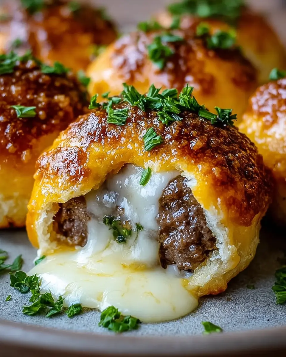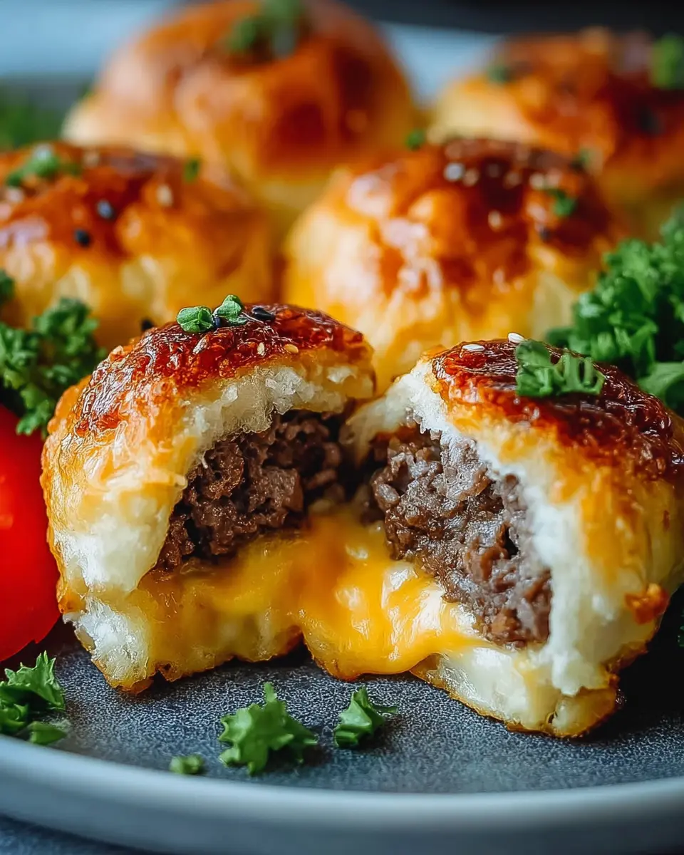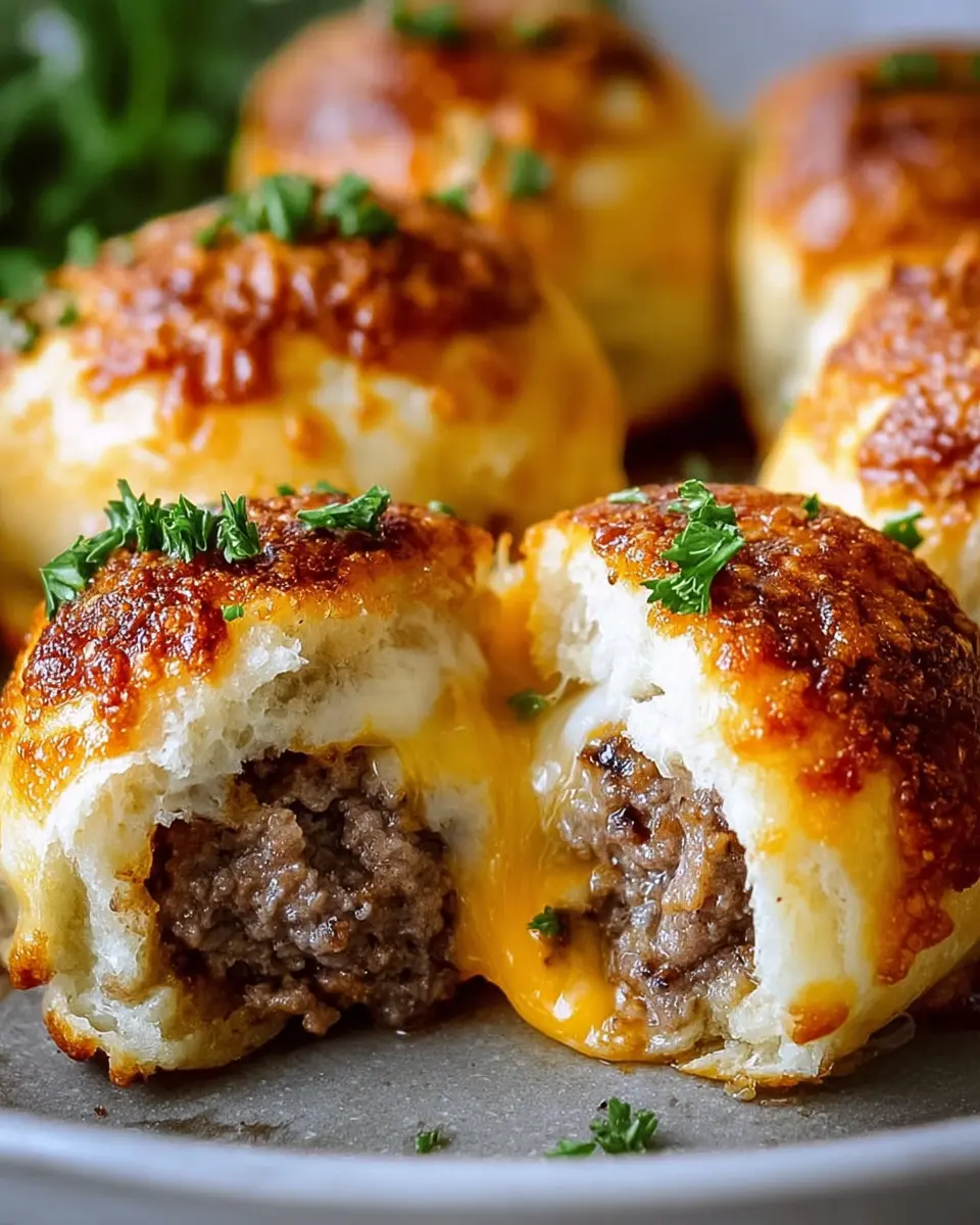 Indulge in the deliciousness of Garlic Parmesan Cheeseburger Bombs, a perfect treat for any food lover.