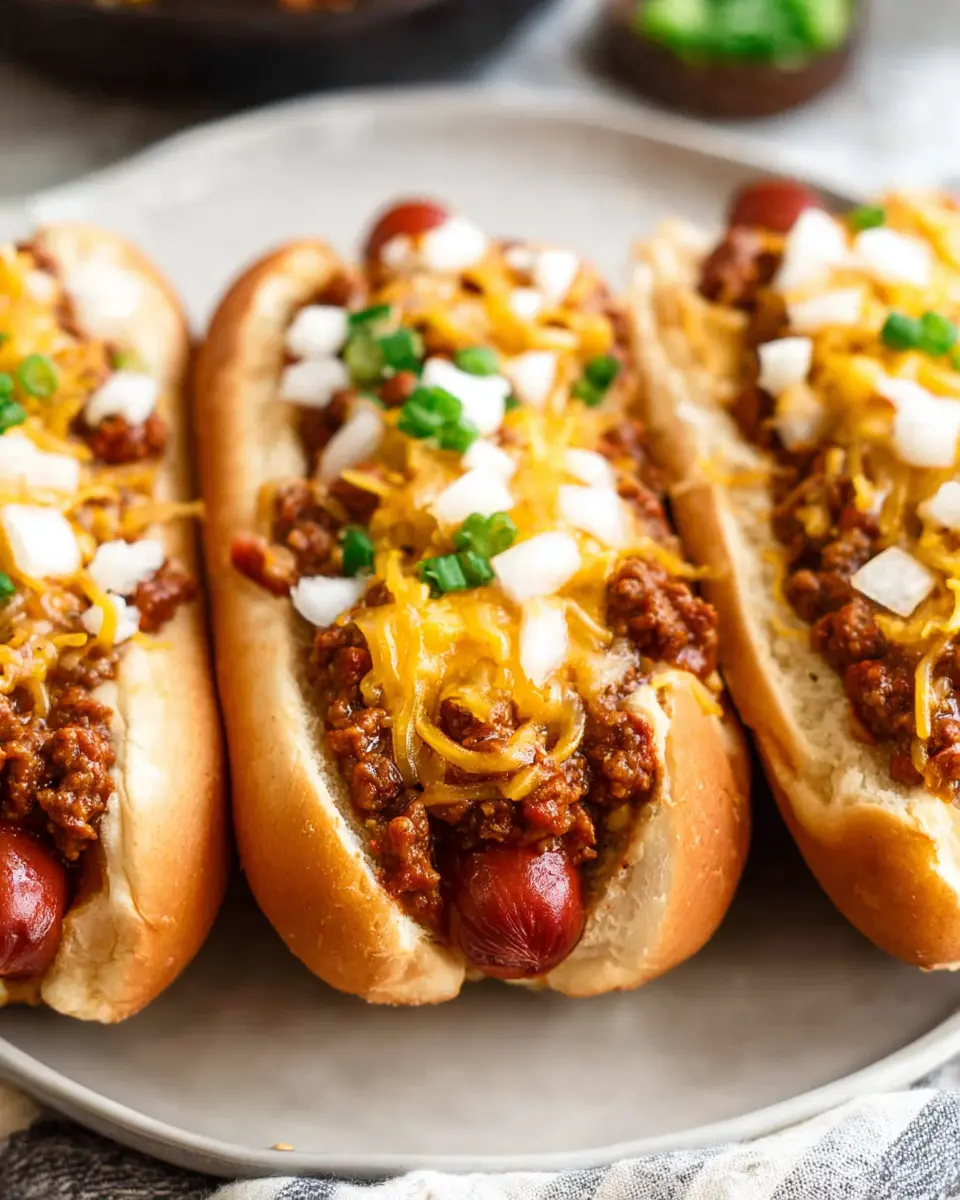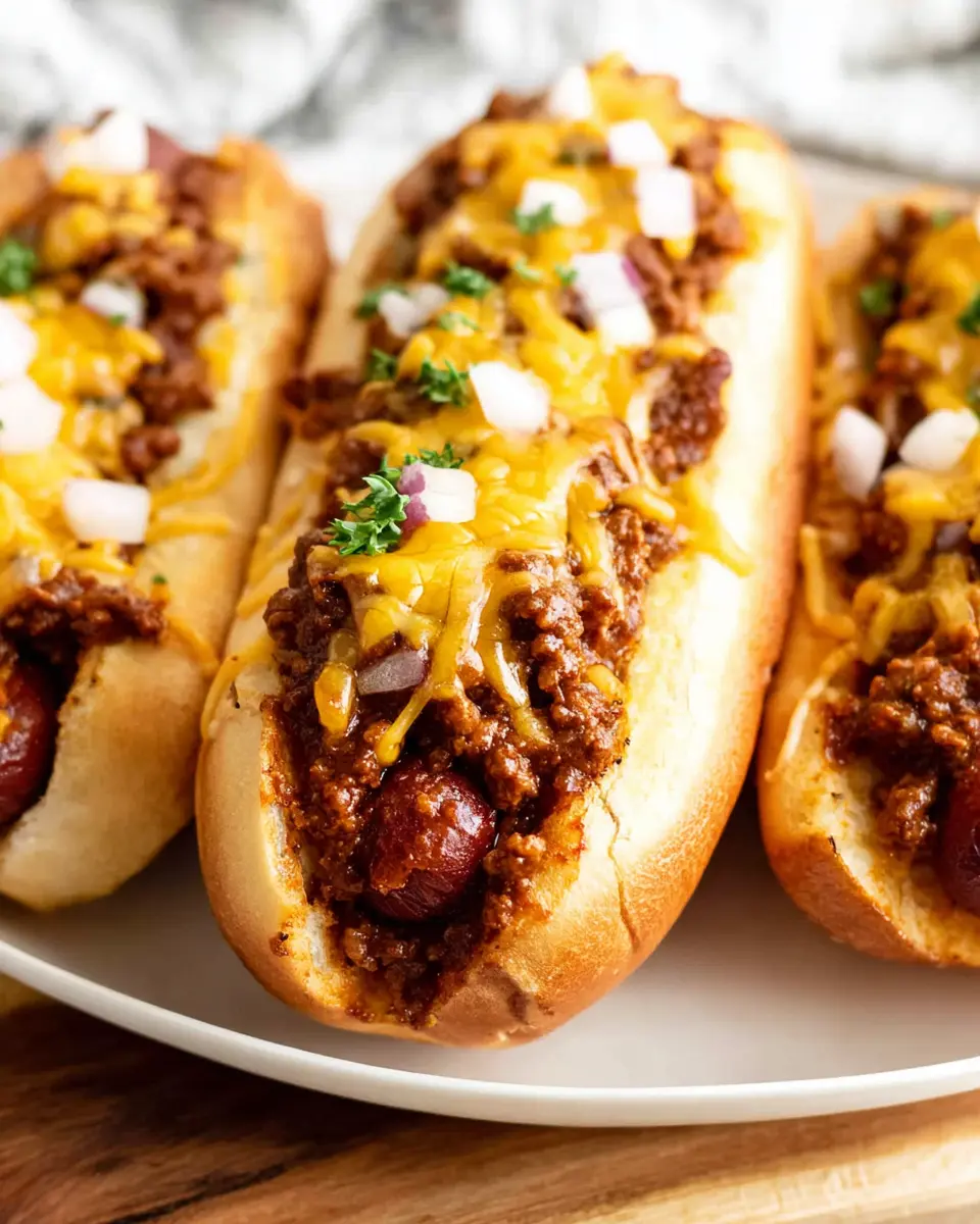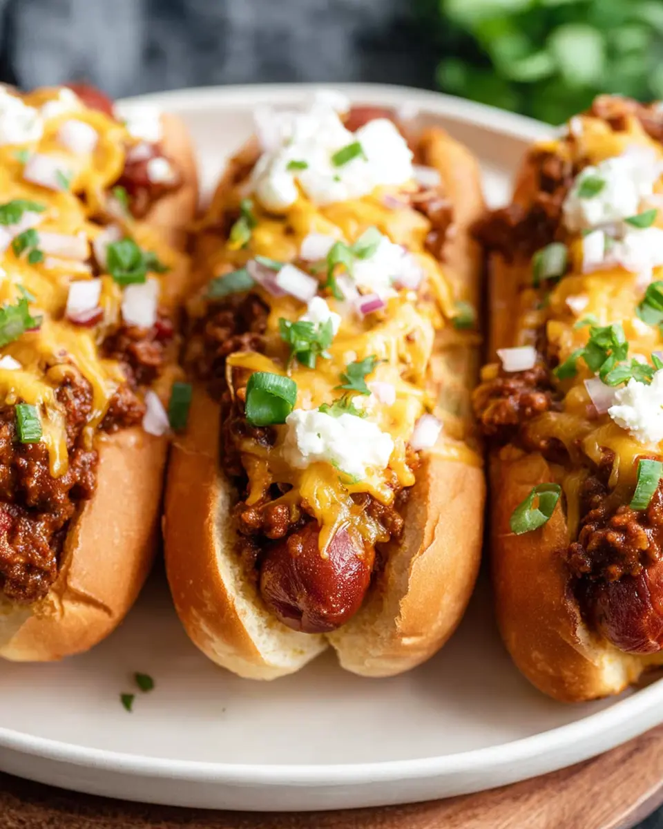 Serve immediately and watch as your friends and family dive in! With their tempting aroma and hearty flavors, these loaded chili cheese dogs will quickly become a go-to dish for game nights, barbecues, or simply a casual dinner at home.