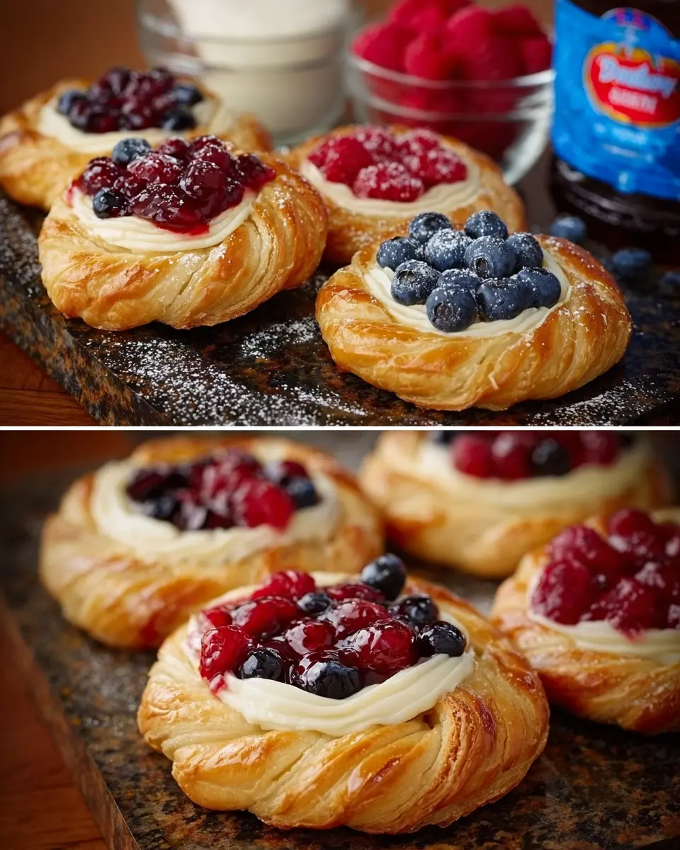 Make sure to gather these ingredients before you start baking, because you’ll want to dive straight into creating these delicious Pillsbury Grands Fruit Danishes! For more inspiration, check out some creative tips on baking with fresh fruit.
