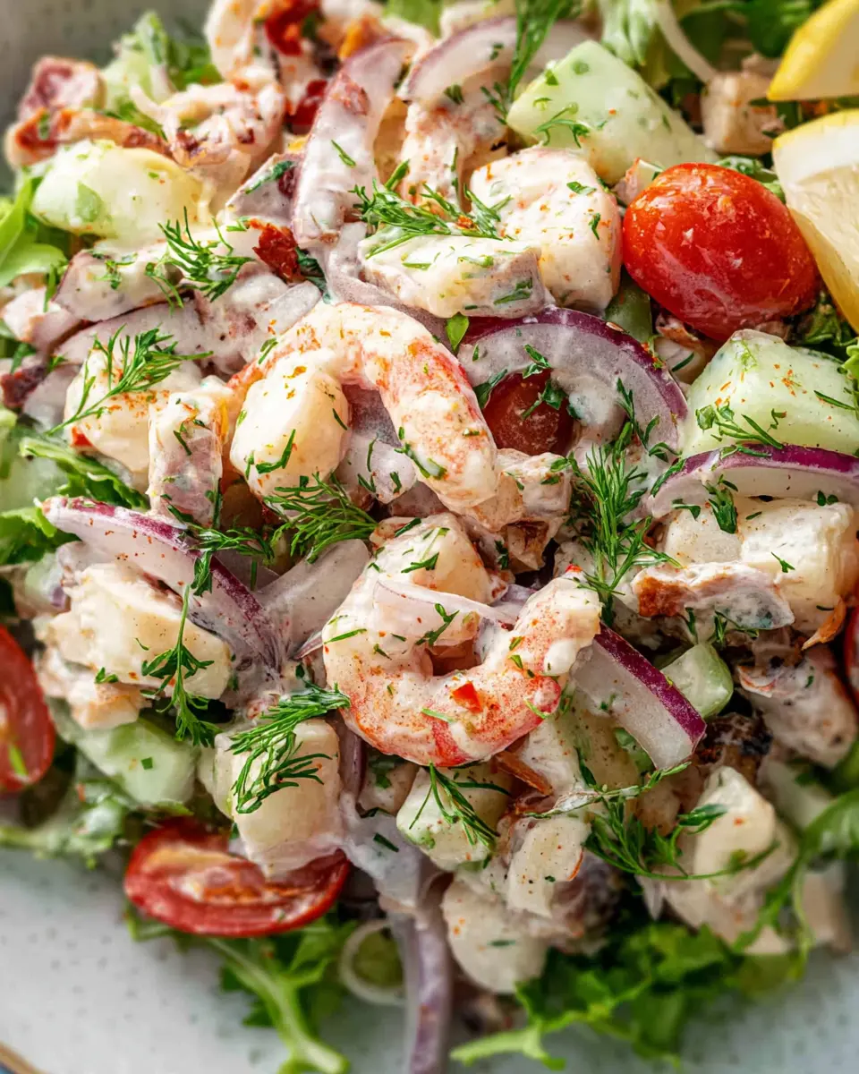 Versatile and Customizable: The beauty of seafood salad lies in its flexibility. You can use any type of seafood you prefer, add a variety of vegetables, and even switch up the dressing. Craving something light and zesty? Go for a vinaigrette made with fresh lemon juice and olive oil. Want it to feel more substantial? Toss in some quinoa or beans for extra fiber.
