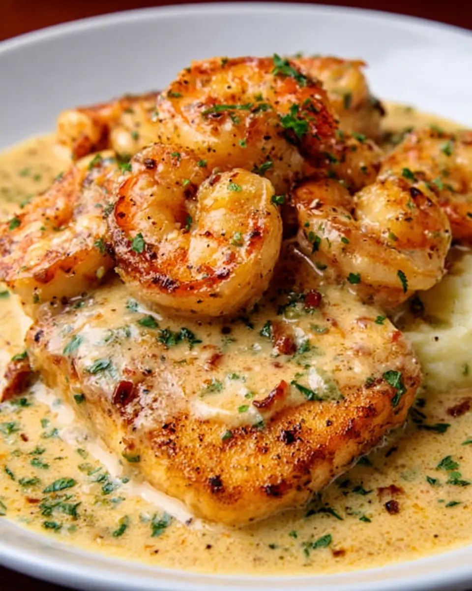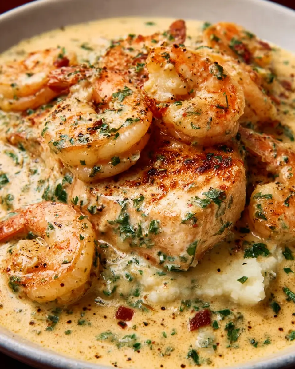 PrintShrimp and Chicken with Creamy Garlic Sauce: A Delicious Twist