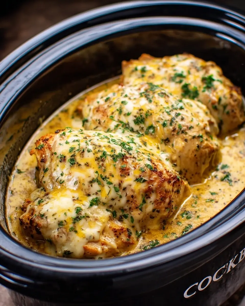 PrintSlow Cooker Cheesy Garlic Chicken: A Cozy, Comfort Dish