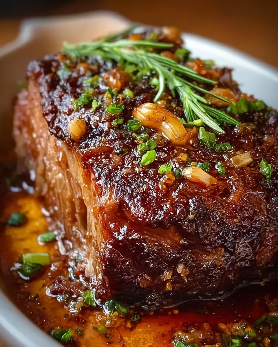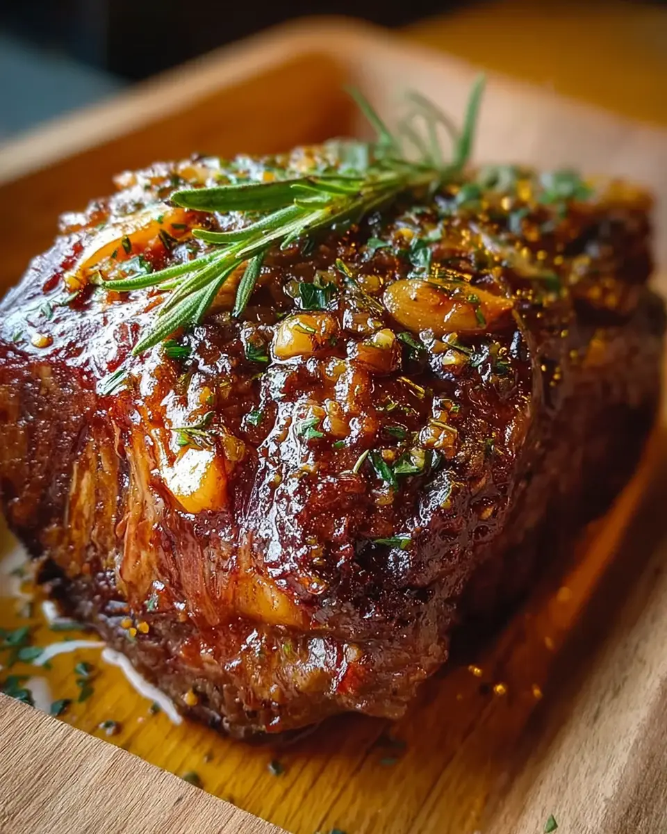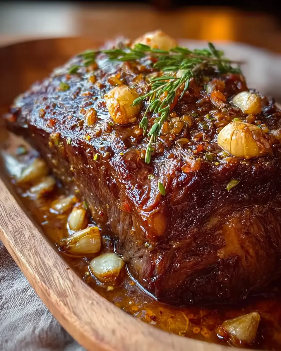 PrintSlow-Roasted Beef Shoulder: Juicy Garlic & Honey Delight Recipe