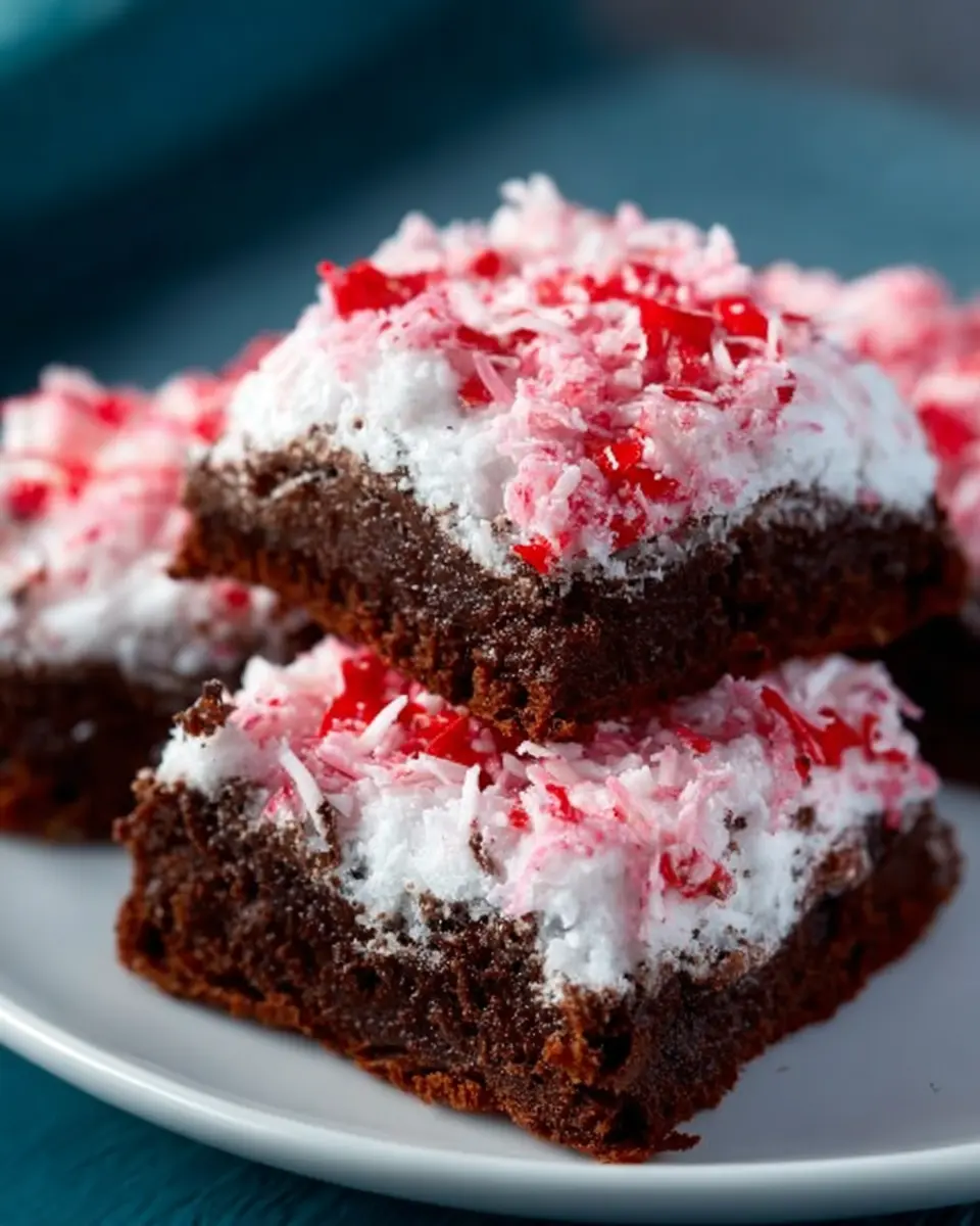 - To make the frosting, mix shredded coconut with powdered sugar and spread over the cooled brownies.