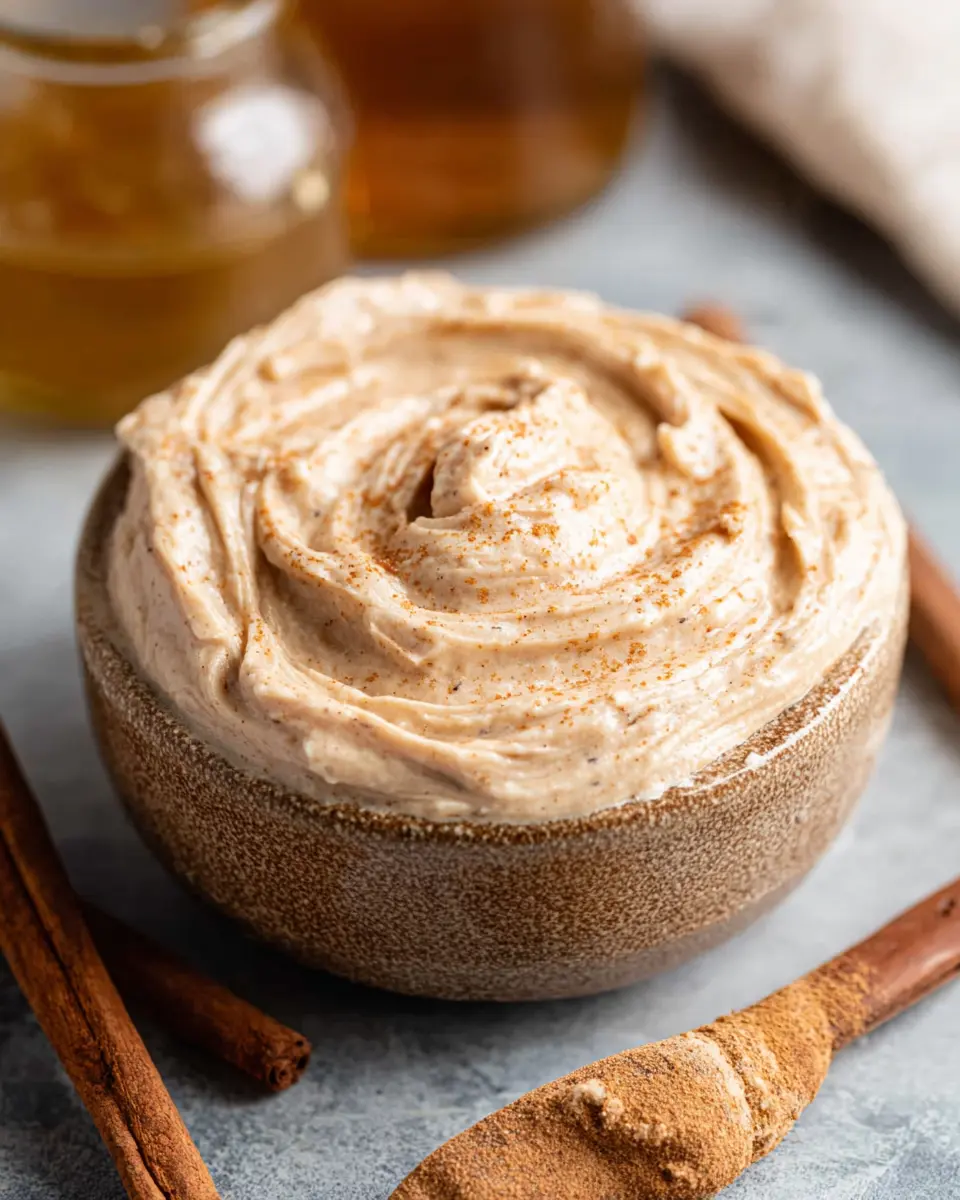 1. In a medium bowl, combine softened butter, powdered sugar, honey, and ground cinnamon.