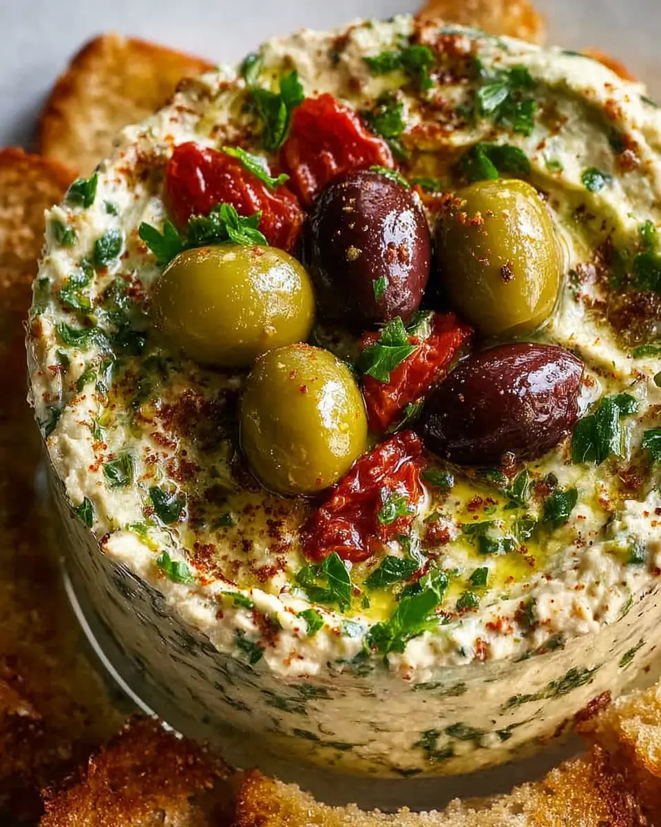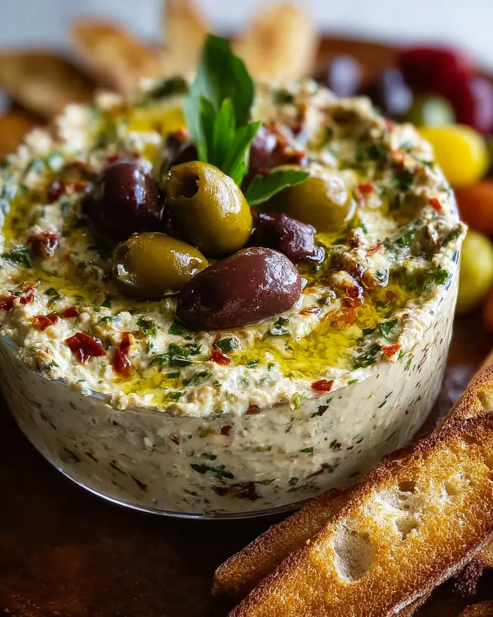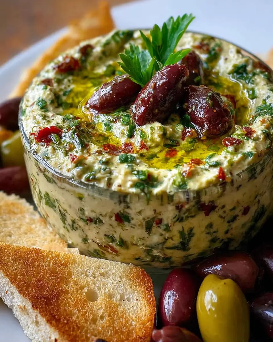 - Ingredients: Combine your classic olive dip base with ½ cup crumbled feta, a squeeze of lemon juice, and a handful of fresh herbs like parsley or oregano.